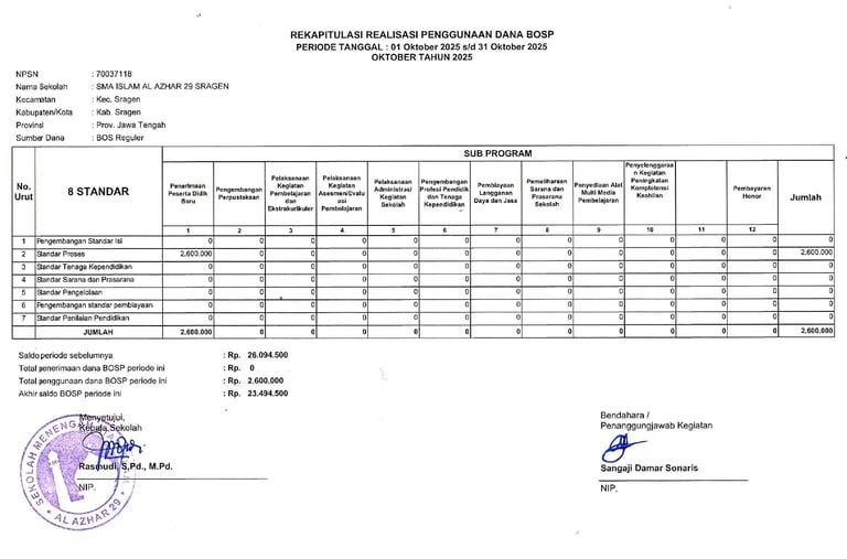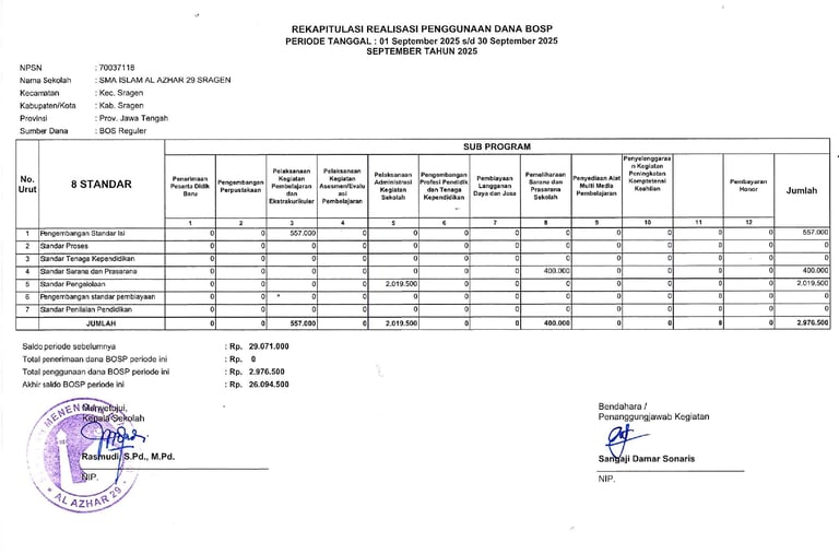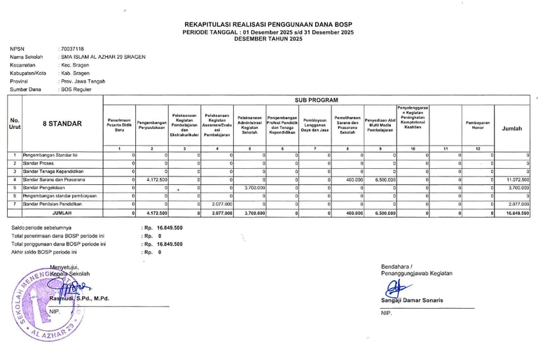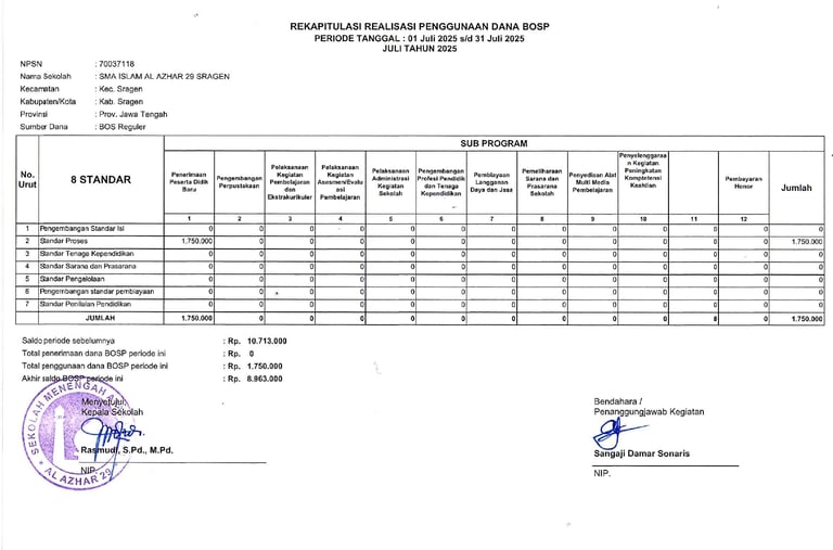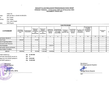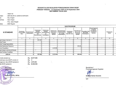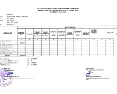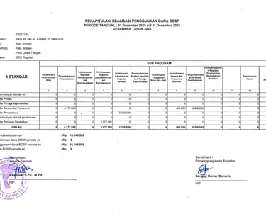 Laporan Rekapitulasi Realisasi Penggunaan Dana BOS Reguler Tahap 2 Tahun 2025
